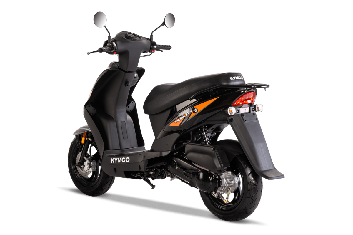 AGILITY 50 25 km/h je vybavena 12ti palcovými koly s kotoučovou brzdou na předním kole, úsporným čtyřtaktním motorem šetrným k životnímu prostředí, prostorným sedadlem a velkým úložným prostorem pod ním.
